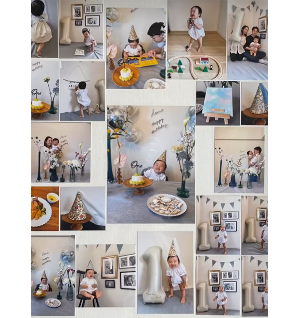 ファーストアルバム、産まれてすぐから1歳までを1冊にされる方が多いようです。たくさんのコメントやデコレーションとともに作られた、世界で1冊のアルバムはその子にとってとても大切な宝物になります。