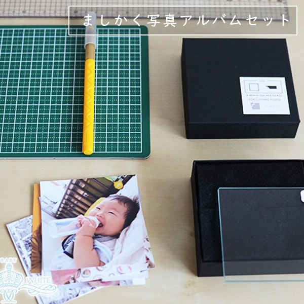 モノホワイトのましかく写真セットでトリミングした写真(80x80mm) 9枚がスッキリおさまります
