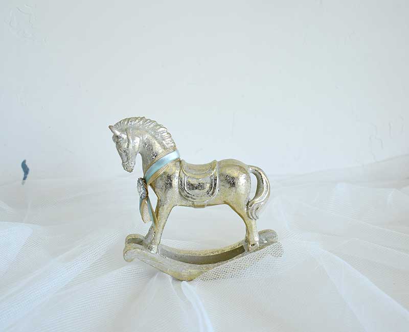 パリの子供部屋にありそうな、シックな青銅色の木馬のオブジェ