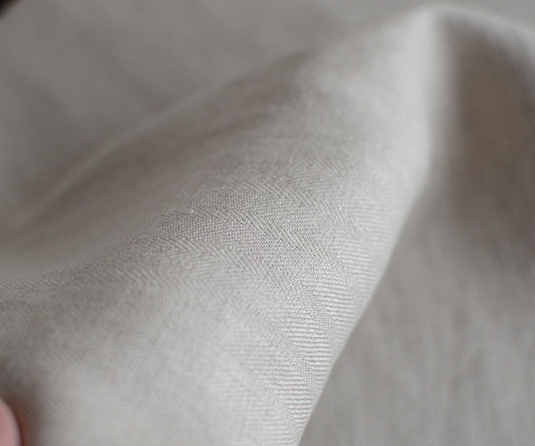 カラー「亜麻」は麻らしい雰囲気のやさしい色です。 細めの糸と細かい織が、肌触りもやさしく、柔らかめの生地になります。