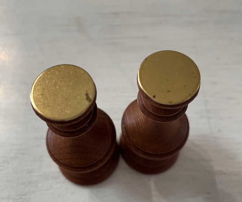 トップの素材は真鍮。年月とともに色合いが変化して様子を楽しんでくださいね。小さな傷や変色部分もあります旨、ご了承ください。木の素材はウォールナット