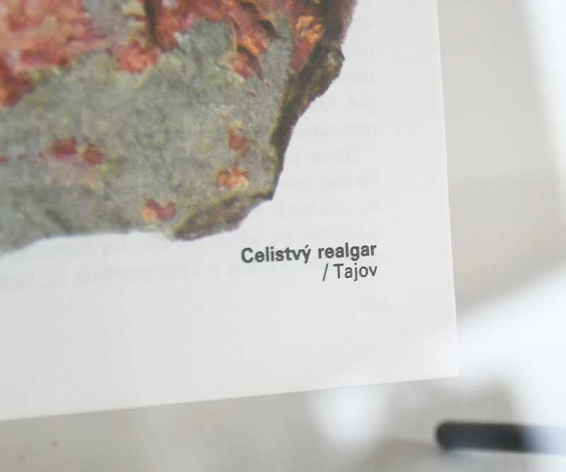 海外の本ならではの、なんともいえない素朴な紙の質感が魅力的。右下の文字は鶏冠石リアルガー( Celistvy realgar ) ,/Tajov。