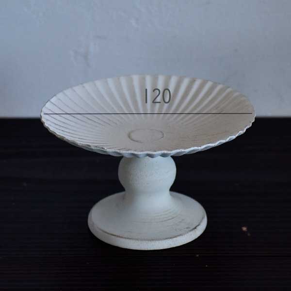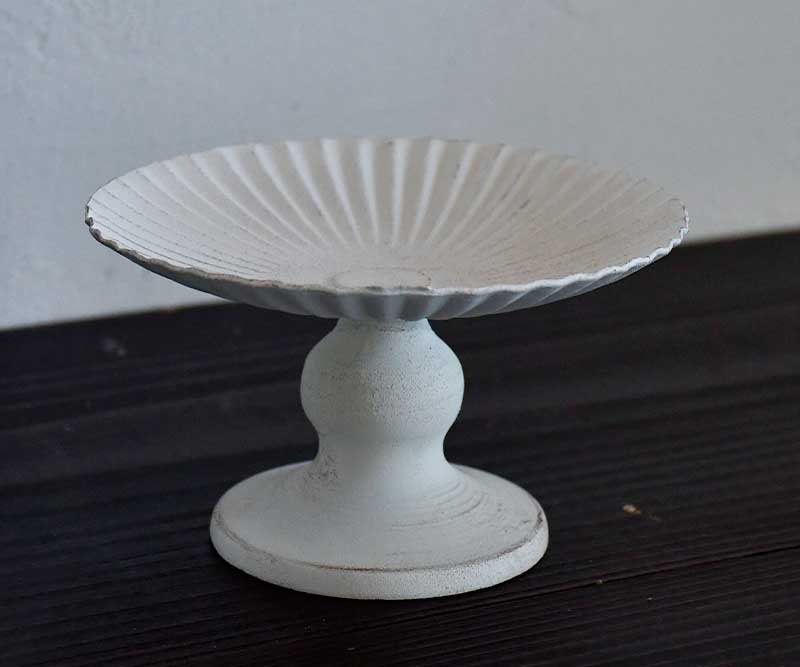 アンティーク仕上げの塗装がいい味をだしています。ブリキでできた白いコンポティエ。