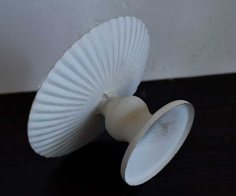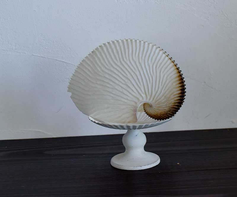 ほどよい高さで気軽に飾れます。アオイガイをのせてみましたよ。透明感のある乳白色と同化してオブジェのようです