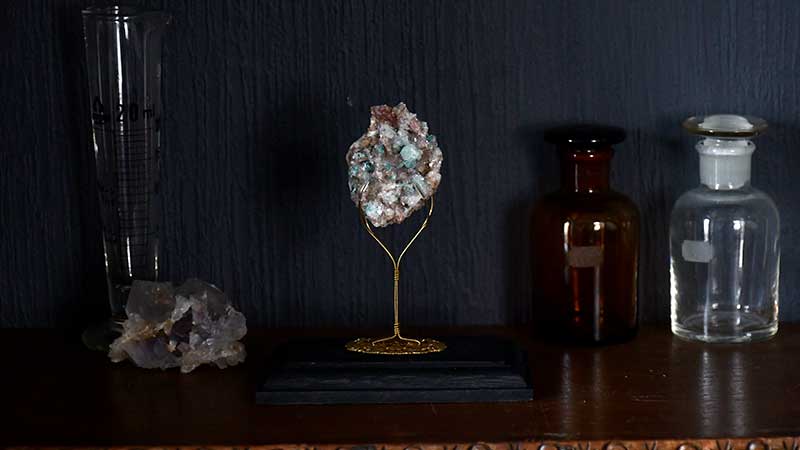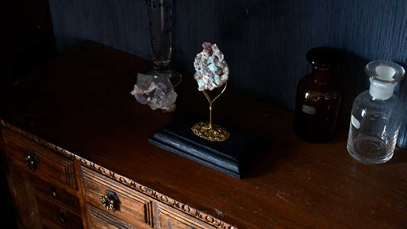 360度から石を眺めることができる、鉱物スタンドは嬉しいですね。クラシカルなデザインが石をより一層素敵に魅せてくれます
