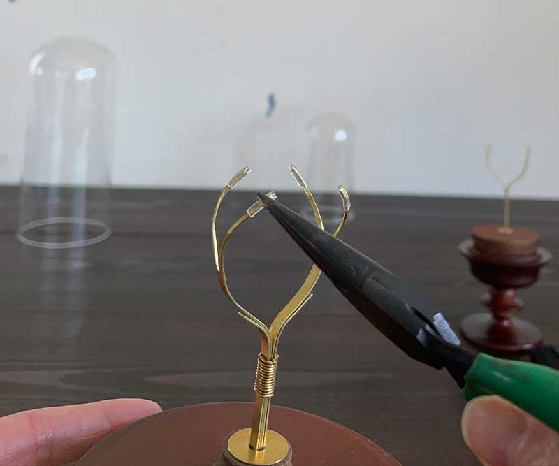 爪は真鍮素材なので硬くホールド感があります。鉱物の形に合わせたいときはニッパーなどで曲げると良いです