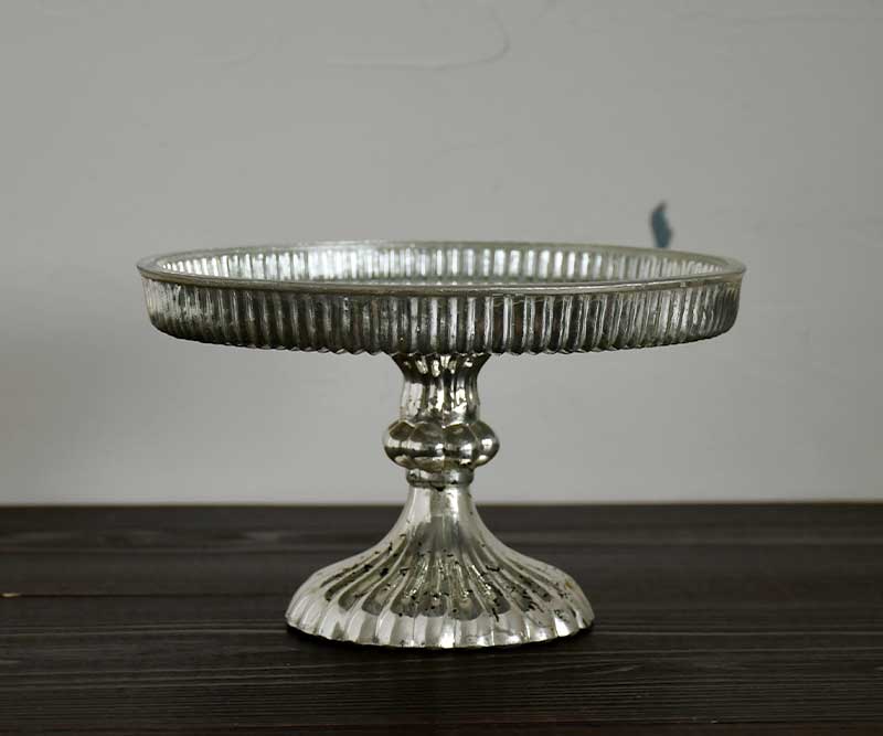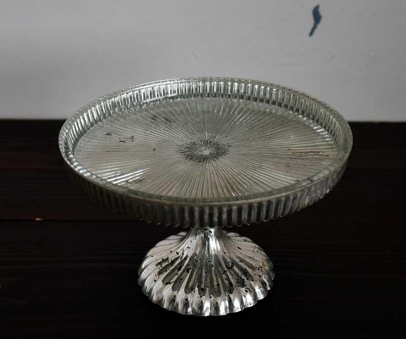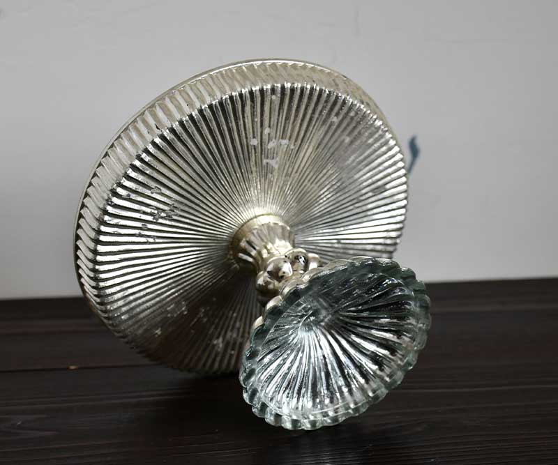 銀食器のようですが、ガラスの上になシルバーが塗装されているシャビーシックな表面。