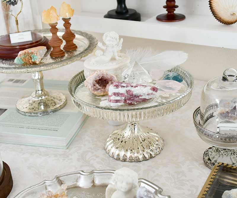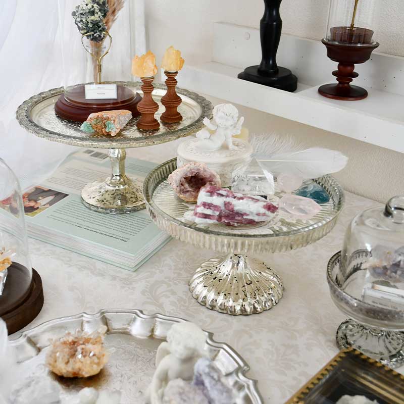 自然な陽の光や風を感じるNaturalな鉱物インテリアに欠かせない「コンポート」。ディスプレイの高さを出し、アクセントをつけてくれるので1台欲しいですね。奥に見えるのがLサイズ。