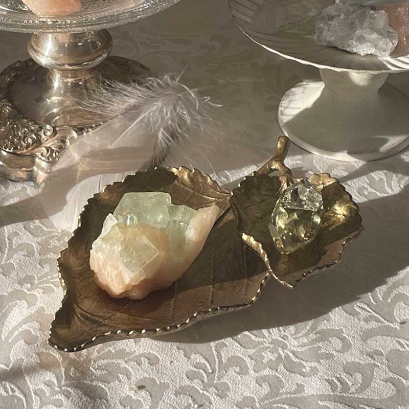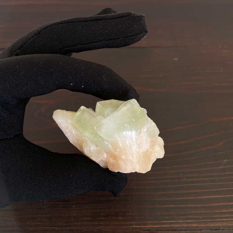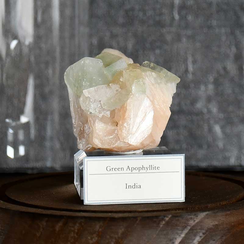 【グリーン・アポフィライト】柔らかなミントグリーンの結晶|鉱物と什器のセット